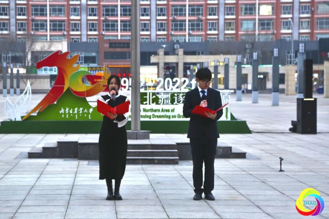 仪式上,来自沙漠治理学院刘松昊、周欣然、石楠、韩永安四位同学在国旗下深情献上诗朗诵《春启新程 逐梦兴农》。他们以饱满的热情和铿锵誓言,深刻诠释了新时代学子 “知农、爱农、强农、兴农” 的初心使命,表达了将青春汗水挥洒在乡村振兴广阔田野的坚定决心,立志为加快推进农业农村现代化、全面建设社会主义现代化国家贡献青春力量。