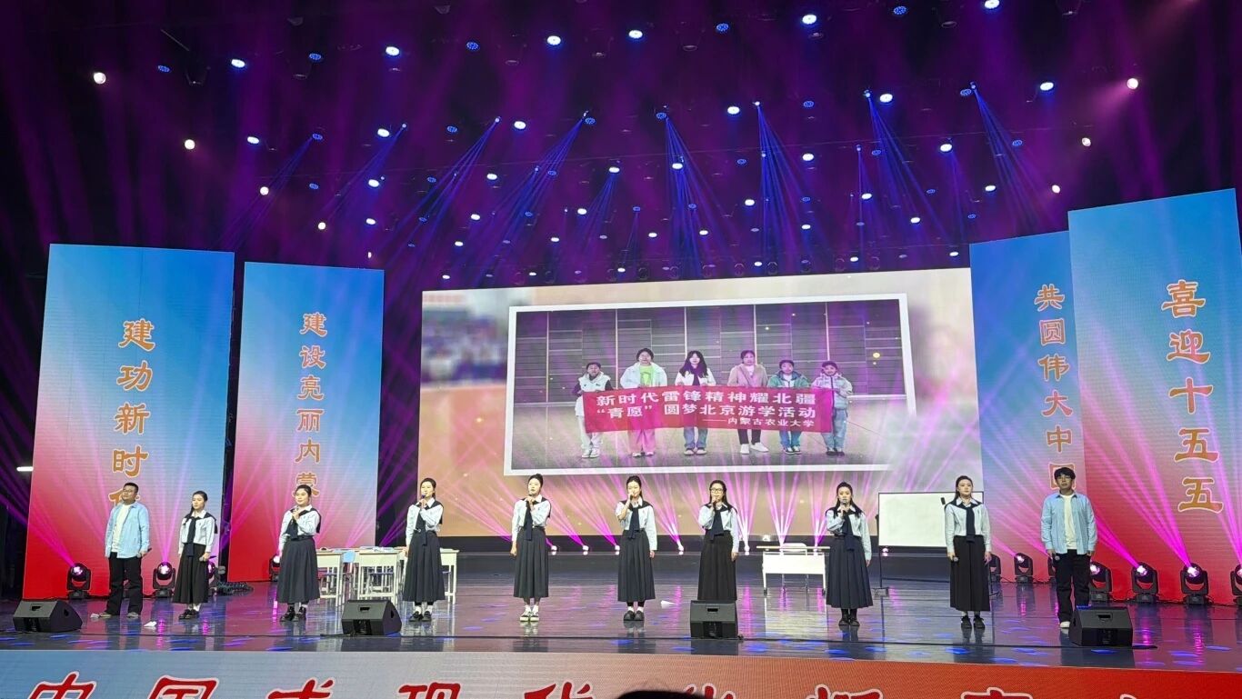 在2025内蒙古自治区青年志愿服务主题晚会暨全区第十届青年志愿服务项目大赛颁奖仪式上,我校研究生支教团学生献上了精彩的情景歌曲表演《入海》,以深情的演唱和生动的舞台表现,展现了研支团扎根基层、奉献青春的精神风貌,赢得了现场观众的赞誉。随后,第25届研究生支教团团长贾诗雨登台分享了研支团依托学校共青团组织优势,深化校地合作,为库伦旗青少年搭建成长平台,开展研学实践活动的情况。新一届研支团也将接力筑梦,让志愿力量在北疆沃土扎根结果,书写教育帮扶的青春答卷。